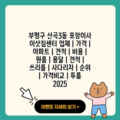 ✅ 부평구 산곡3동 이사 비용을 비교하고 최적의 업체를 찾아보세요.