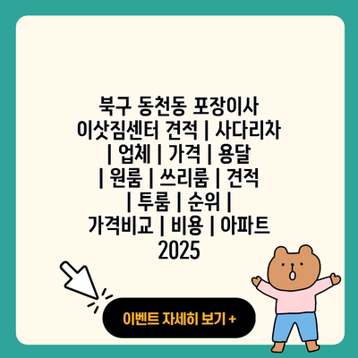2025년 북구 동천동 포장이사 이삿짐센터 완벽 가이드